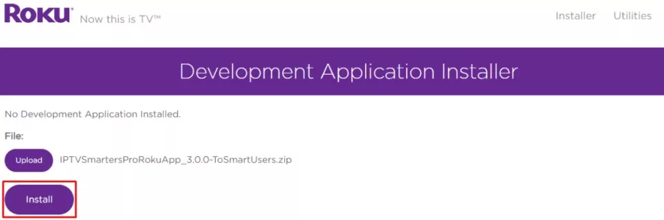 After adding the channel, upload the IPTV Smarters file using the provided URL to install it on your Roku device.