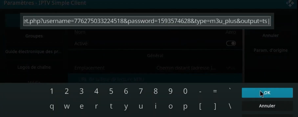 Go to Configure > General and paste the M3U URL provided by your IPTV subscription into the Playlist URL field.